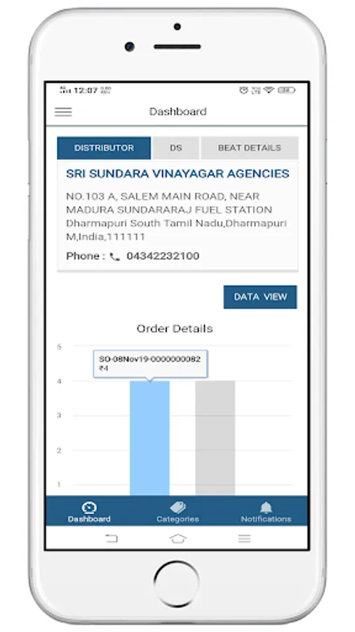 The app enables Retailers to place orders based on their purchase history, fast moving products and SKUs, New launches etc. It empowers Retailers to access the history and status of orders on a real-time basis.
