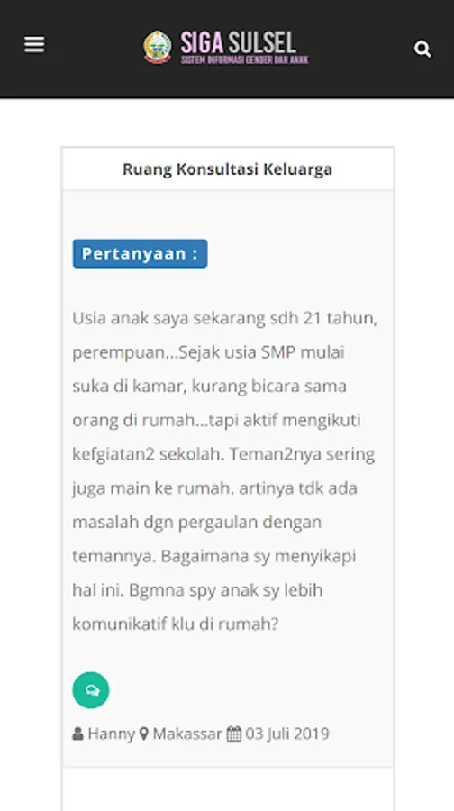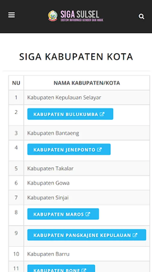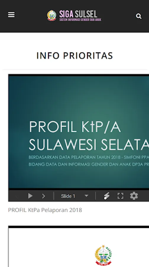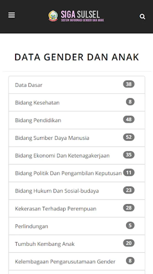 SIGA Sulsel adalah Sistem Informas Gender dan Anak Sulawesi Selatan, yang berisi data Profil, Data Gender dan Anak, Bahan KIE, Puspaga, Forum Anak Sulsel, Simfoni, SIGA Kabupaten/Kota dan Info Prioritas