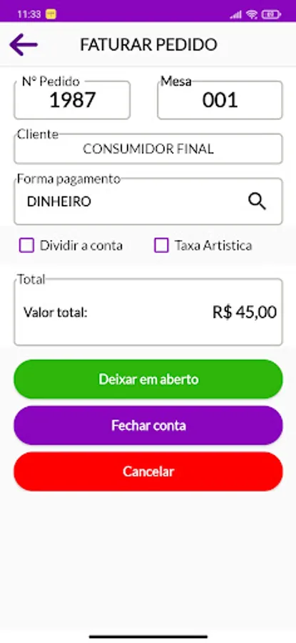 In addition, Sig Gourmet also offers the option of single order. This is especially useful when the customer wants to place an order directly at the counter, without having to occupy a specific table. The waiter can select the single order option and enter the items requested by the customer, following the same process of selection, customization and sending to the kitchen. This allows for greater flexibility in customer service, ensuring that all requests are met, regardless of whether they are seated at a table or not.