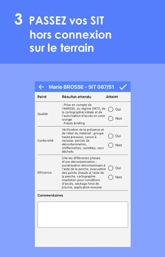Reserved for SIGECO customers (skills management web application), allows EVALUATORS to run "situation scenarios" (SIT) on smartphone or tablet, offline, as part of the skills assessment.