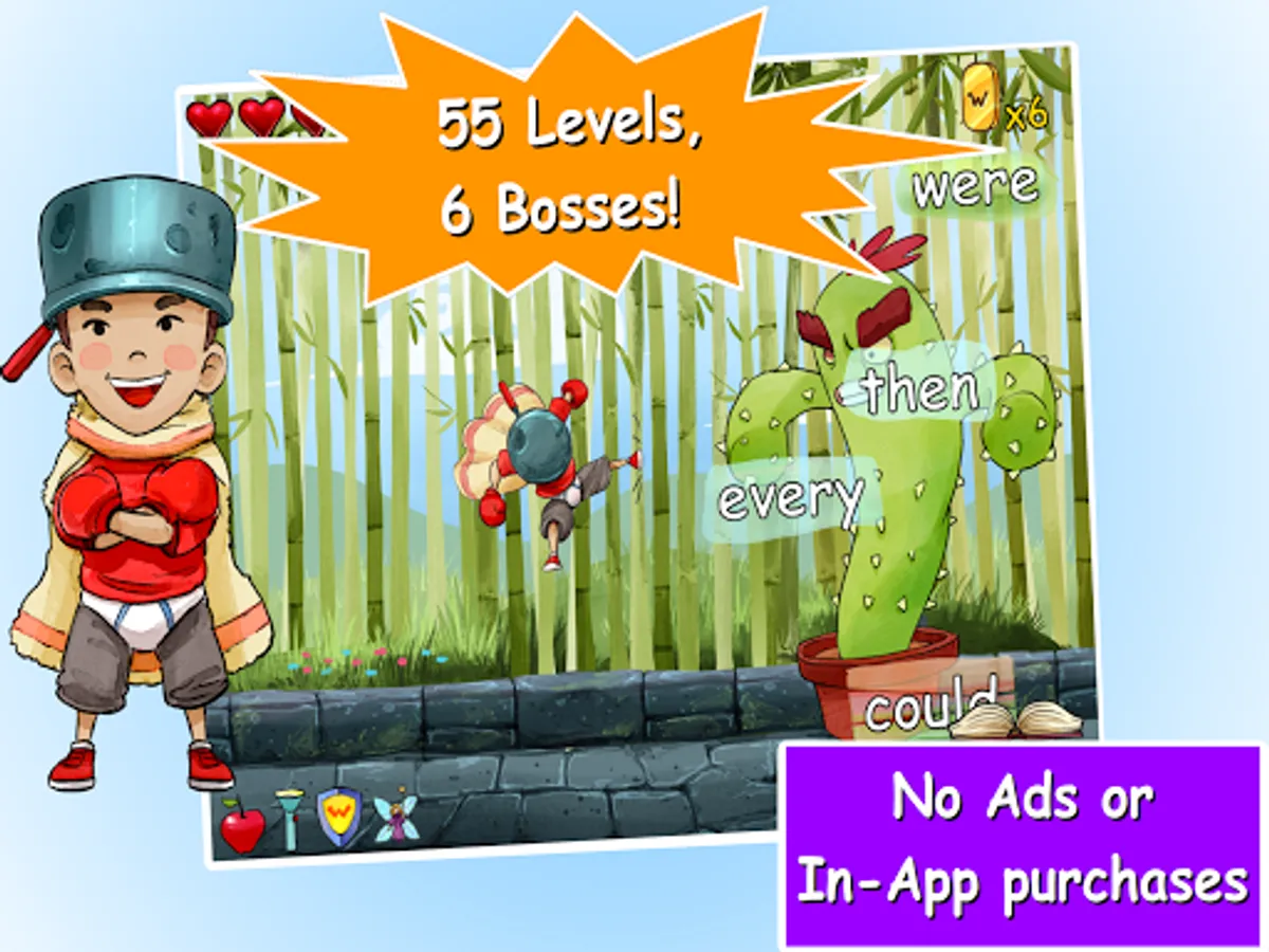 Defeat different levels to unlock illustrated sight word stories. See if you can defeat the bosses to unlock new game features and learn new sight words. Kids can pick from boxing punches and kicks, making them feel like little sight word fighters.