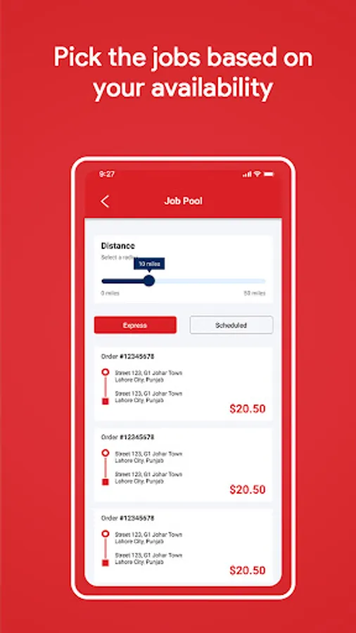 3. Filter deliveries by changing radius distance from your location