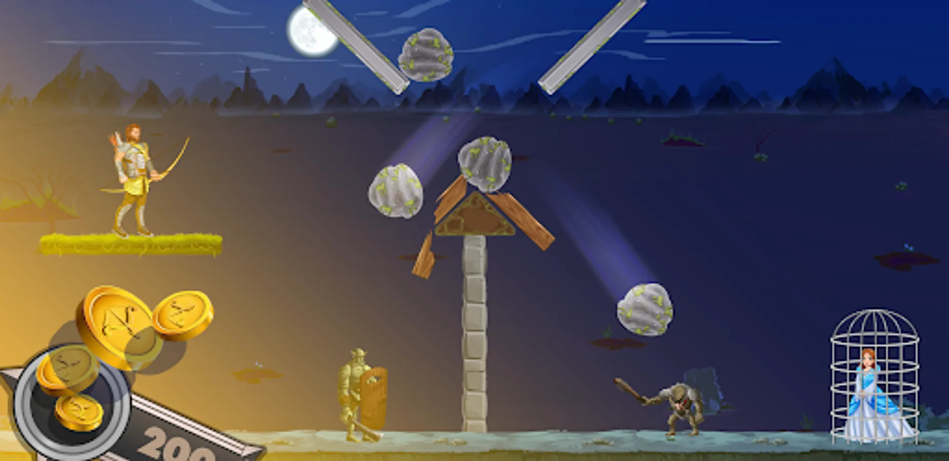 Simple and intuitive controls. Tap on the screen and pull to charge your epic bow. Destroy enemies by picking the best angle of attack.