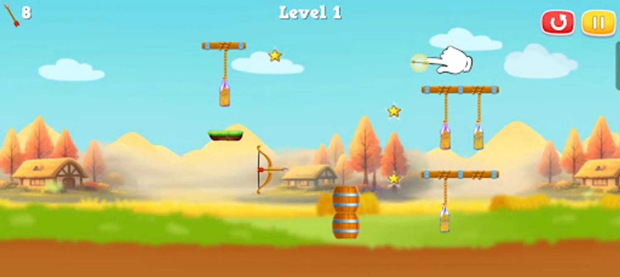 Grab your bow, aim carefully, and shoot the bottles placed on platforms, moving targets, stacked shelves, and tricky puzzle layouts. Each level brings a new challenge that tests your precision and timing!