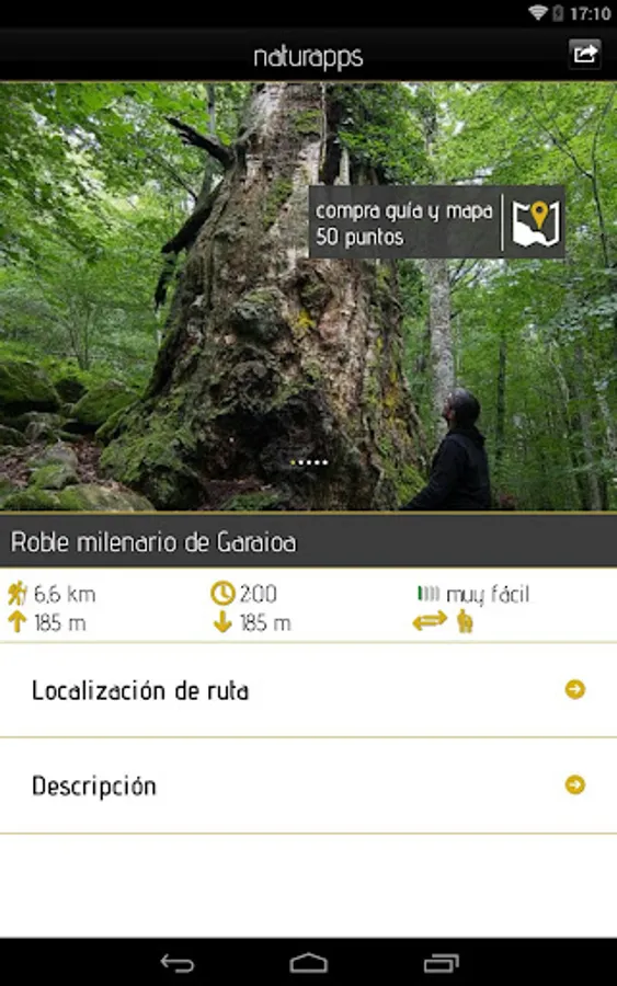 For each trail, Naturapps offers you a full path description, a picture gallery and the location of the starting point. Additionally, you will also be able to buy, directly from the app, high quality interactive maps where you will see the trail, your GPS position and points of interest with interpretive content.