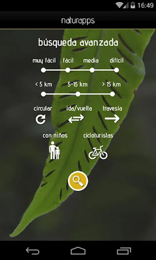 Using Naturapps on your smartphone you can find trails that will take you to amazing places. Try our search to choose the trail that suits your requirements. You can search by location and characteristics (difficulty, length or type of trial). We include tours for all levels and also a specially recommended selection to enjoy with children and bikers.