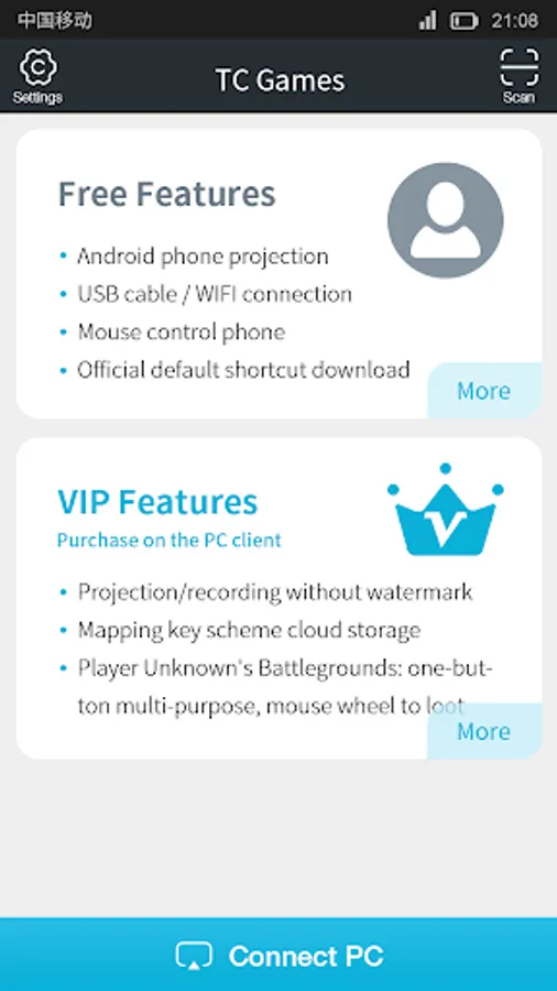 TC Games is an app that can mirror your Android screen onto your computer, allowing you to play Android games on PC with your keyboard and mouse. The app boasts extremely low CPU usage and stable performance, supporting all mobile games. It also has many other features, including screen recording and multi-use keymapping so you can take total control of your games.