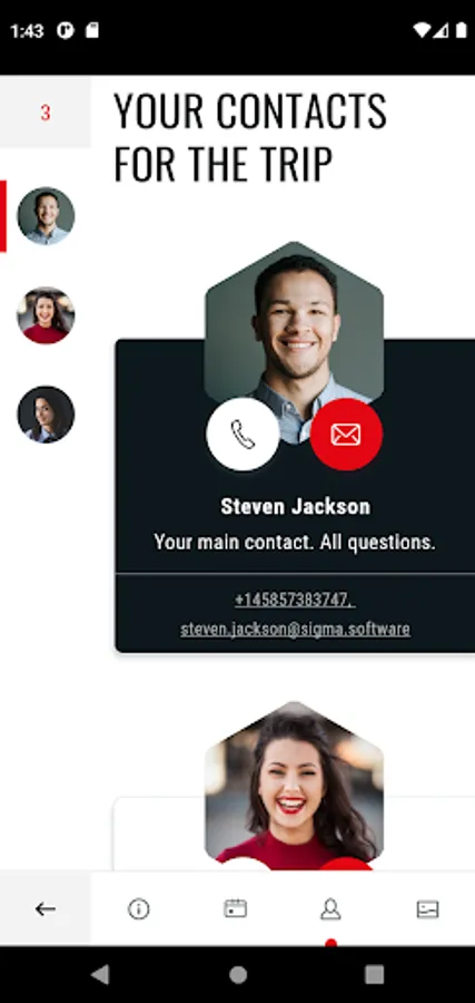 Modernly designed app allows to add welcome text, details per event in agenda, contact persons.