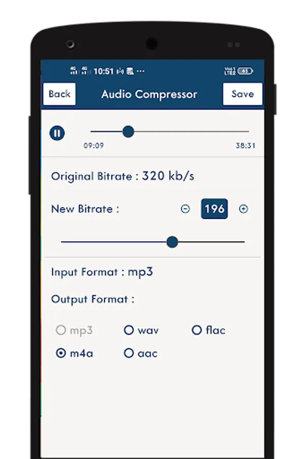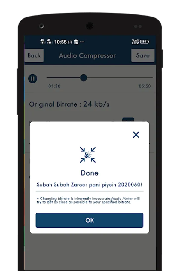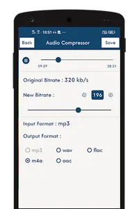 It Compresses Audio in Memory Size in Output with Simple steps & Save File to Your Device.