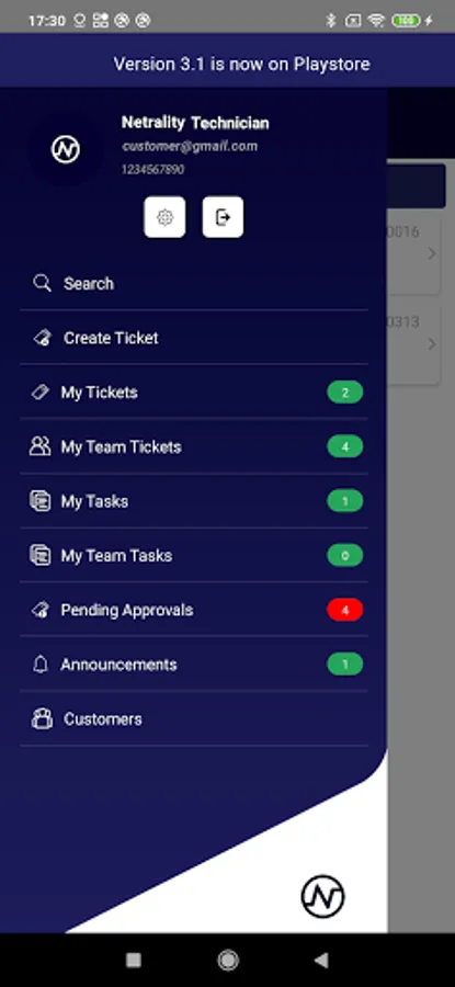 Mobile application with a sleek, user friendly interface for submitting and reviewing tickets and approvals. The application has access to Netrality site and contact information. Customers will have the ability to chat live with technicians as well as receive notifications straight to the phone. Add attachments, approve or deny, withdraw, and filter through owned tickets.