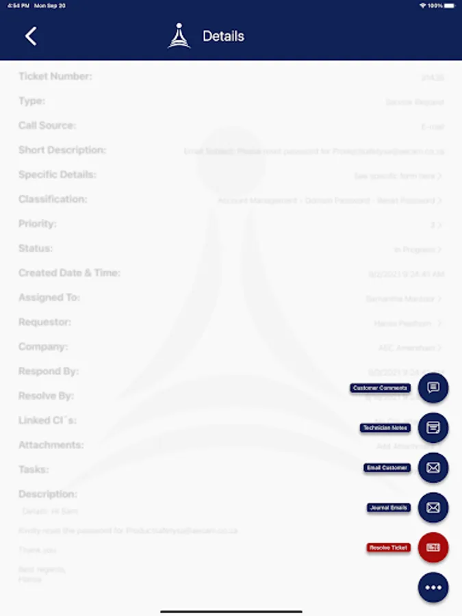 NTP IT Service Desk offers your Technicians a seamless Cherwell mobile experience. It’s easy to use interface lets your Technicians interact with Service Requests, Incidents, Problems, Knowledge Articles, Approvals, and any Enterprise Service Management application.