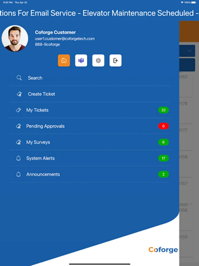 Coforge Customer offers your Customers a seamless ServiceNow experience. It’s easy to use interface lets your Customers interact with ServiceRequests, Incidents, Problems, KnowledgeArticles, Approvals, and any Enterprise Service Management applications.