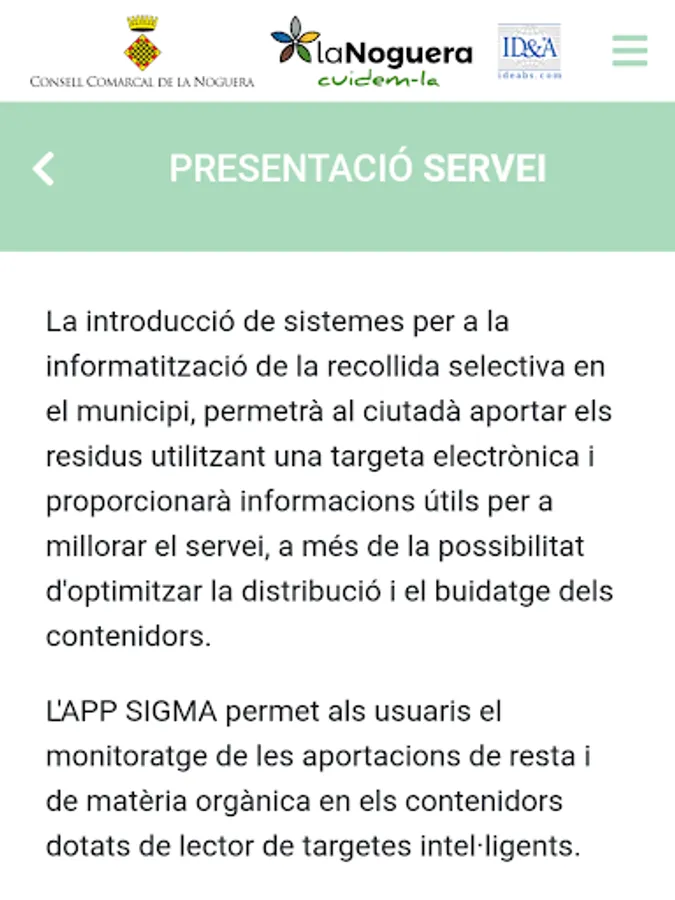 - Container opening: users can deliver waste by identifying with SIGMA mobile App.