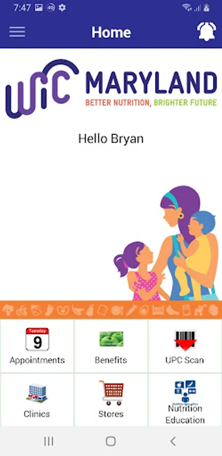 The Maryland WIC Mobile App will give WIC participants the opportunity to view upcoming appointments, view food benefits that have been issued to them in the clinic, scan UPCs while shopping at the store to see if the UPC is a WIC Approved item or not, and provide information on locations of WIC Stores and WIC Clinics across the State of Maryland.