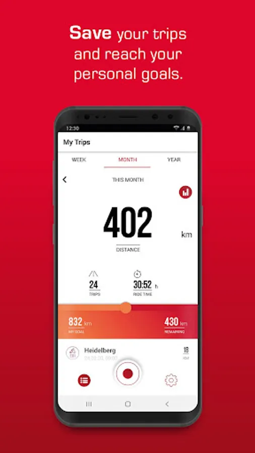 In the menu item 'My Trips' you will find a summary of your recorded trips including weekly, monthly and annual statistics (distance, riding time). Here you can also see if you have reached your set goals or not. The trips can also be uploaded to the free SIGMA CLOUD.
