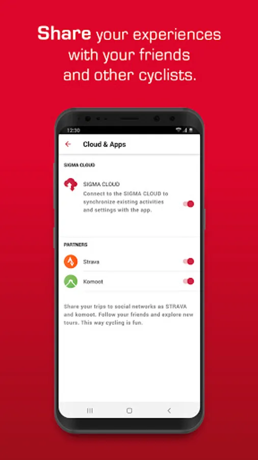 Share your trips on Facebook, Instagram, Twitter and WhatsApp. A synchronization with komoot and Strava is also possible.