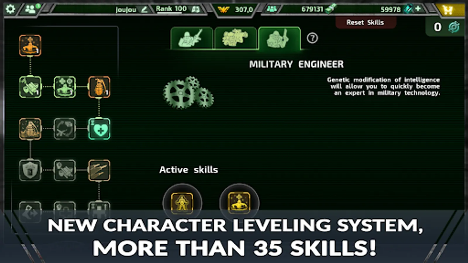 - 39 skills, three character leveling branches