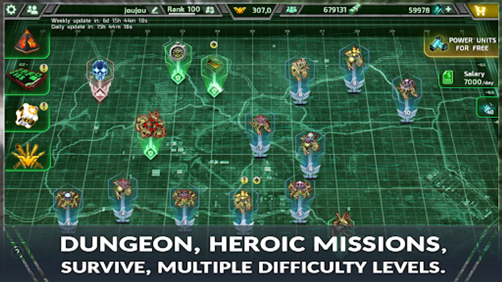 - Dungeon, heroic missions, survival missions, multiple difficulty levels