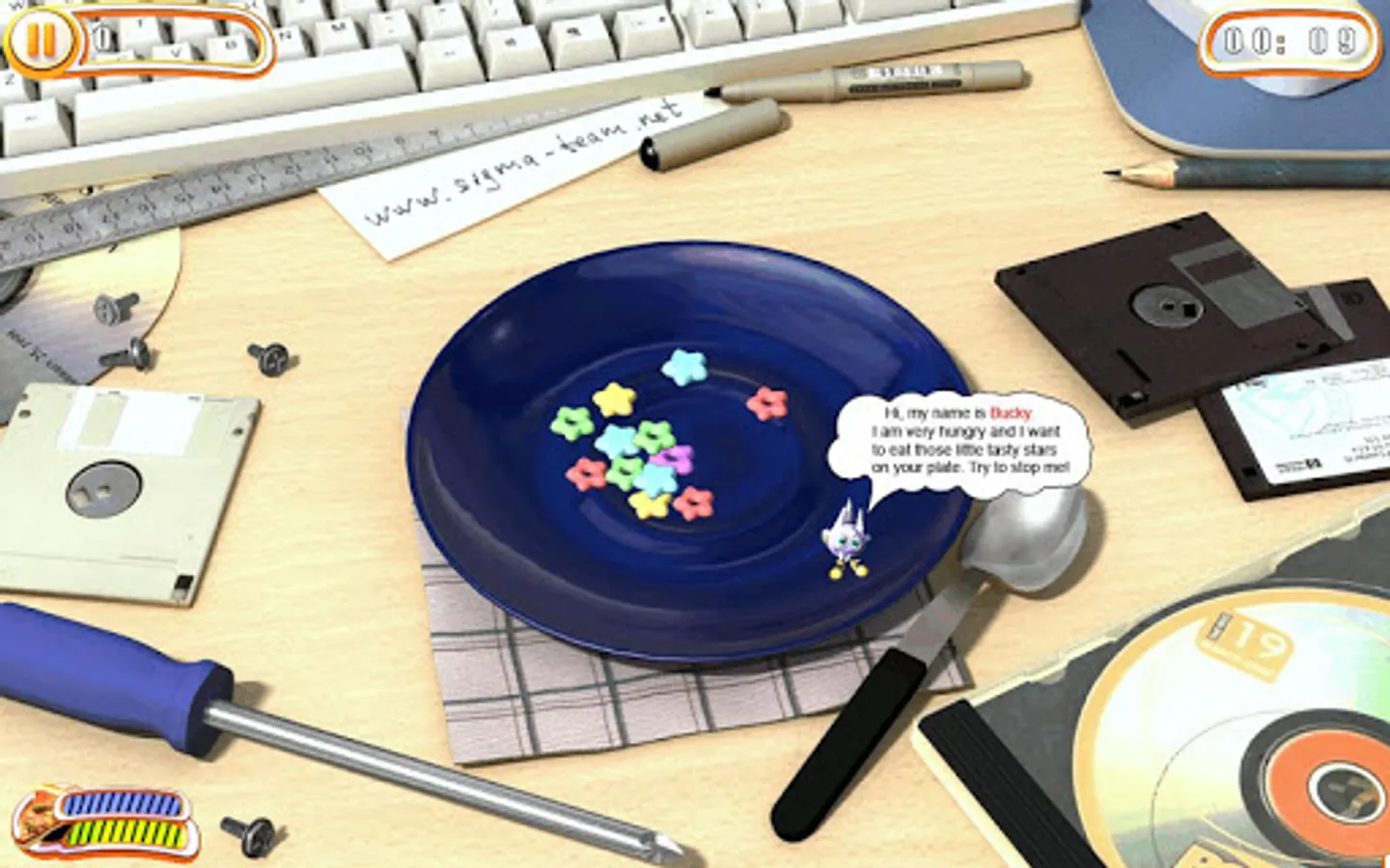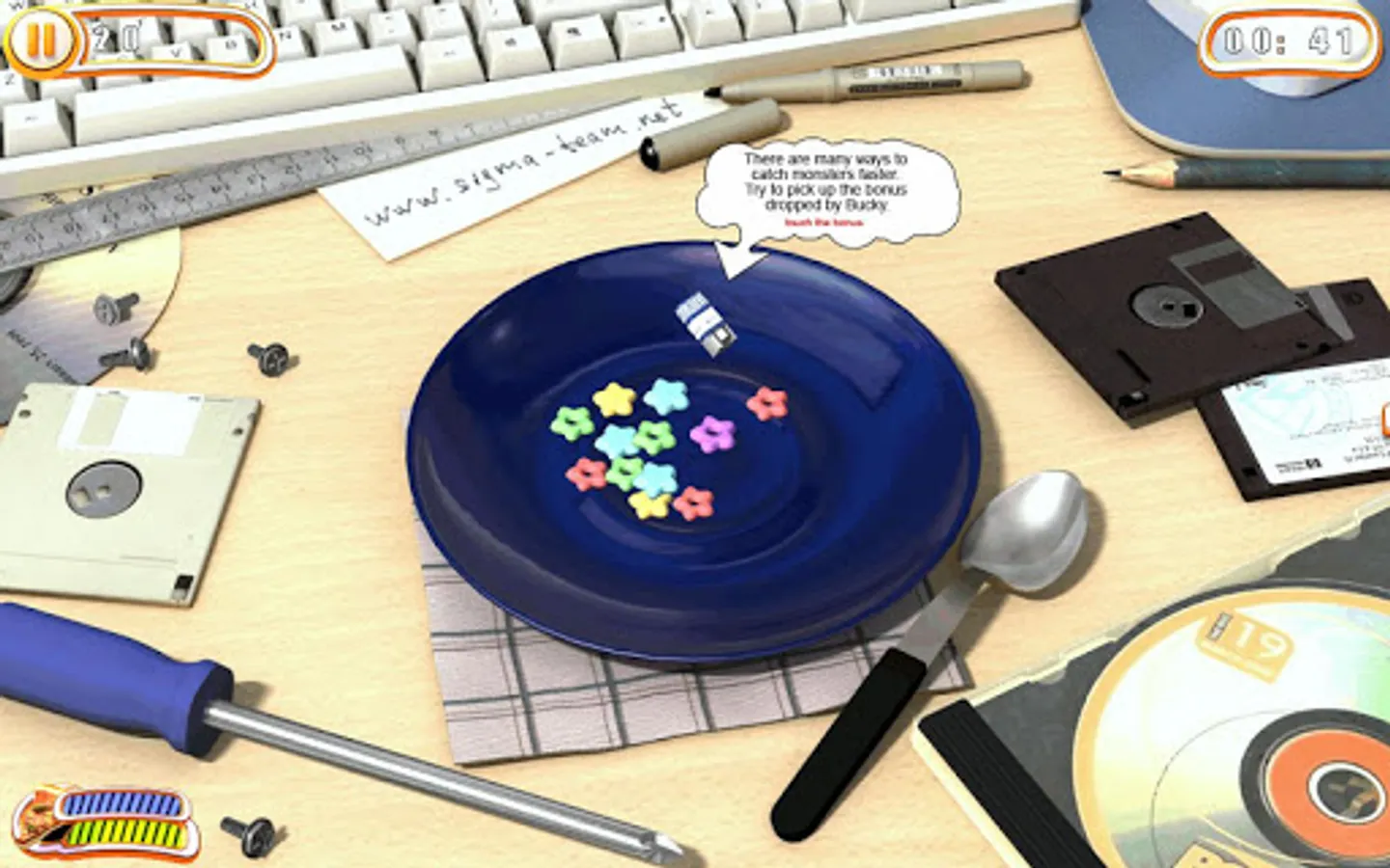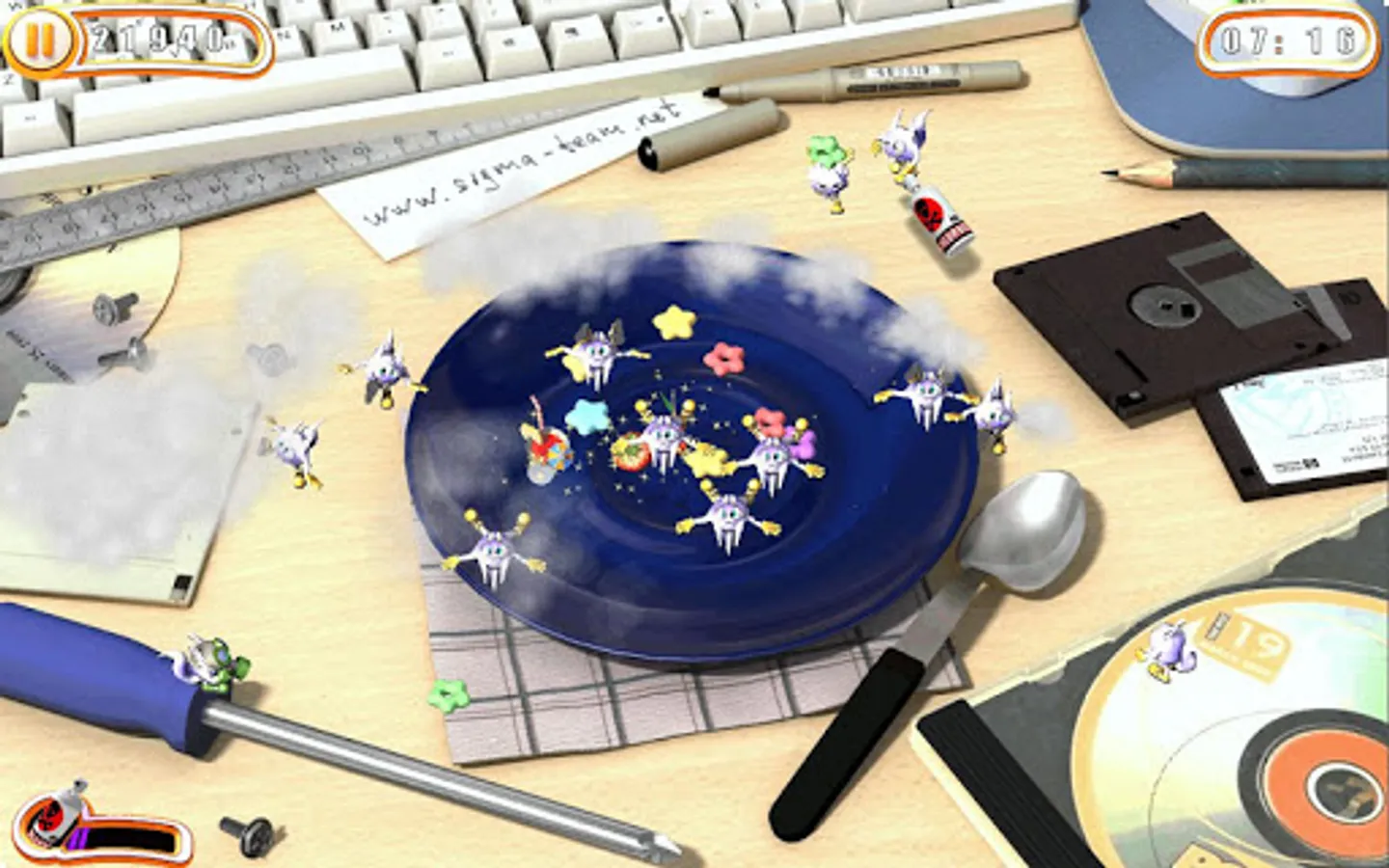 The problem is that little strange creatures appeared on your desk. You will have a lot of fun trying to get rid of them.