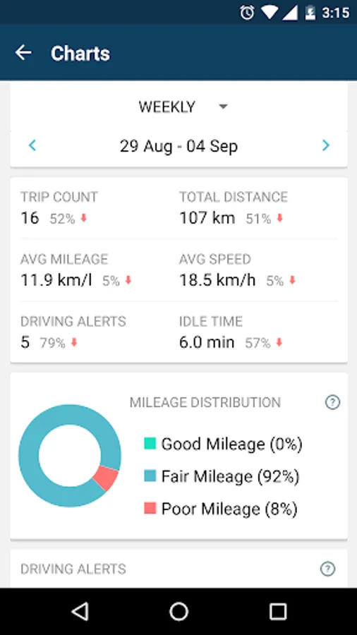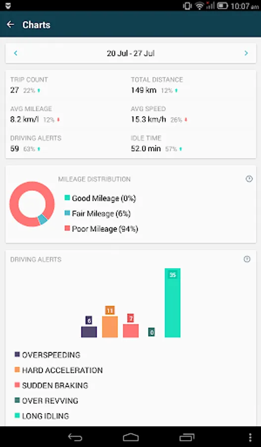 Get weekly trend charts to see how your driving is improving week on week. A consolidated Safe driving score and its weekly trend encourages you to become a safer driver.