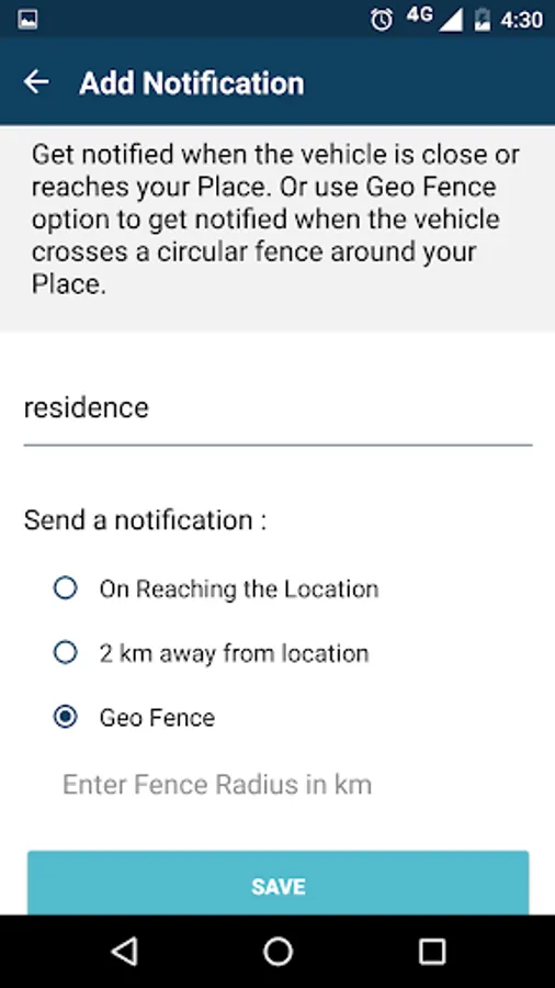 Set up a geo-fence in the App and get notified when your car crosses it, thus ensuring that your car remains within a boundary