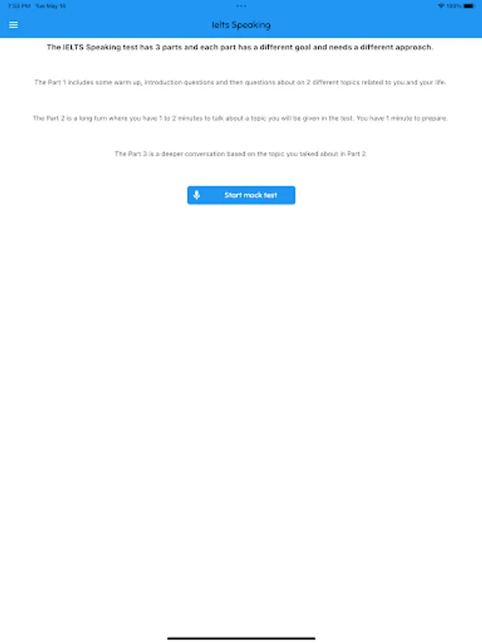 Prepare for the IELTS Speaking test with confidence using our innovative IELTS Speaking Mock Test app powered by artificial intelligence (AI). This app is specifically designed to help you improve your speaking skills and boost your score on the IELTS exam.