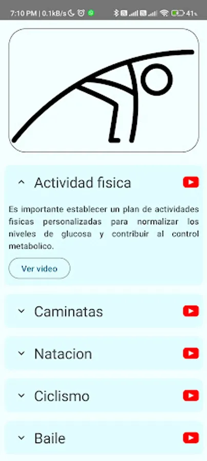 The activities section of the app offers suggestions and recommendations on suitable physical and sports activities for people with type 1 diabetes. Users can find a variety of exercises that help them maintain an active and healthy lifestyle. The app also offers preset exercise routines and tips on how to manage your blood sugar before, during and after exercise.