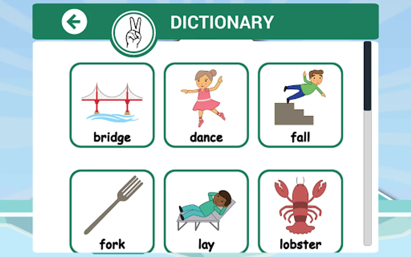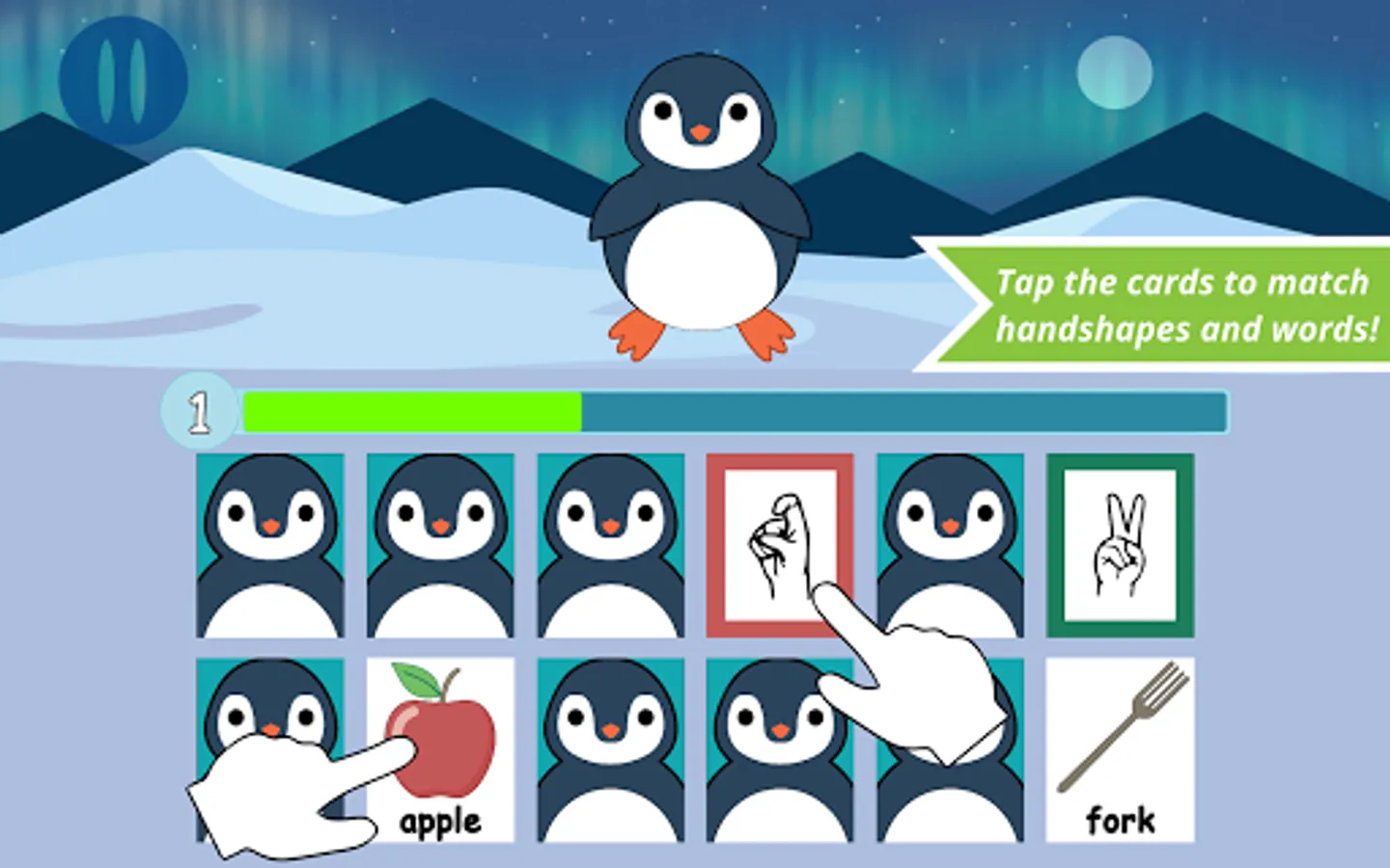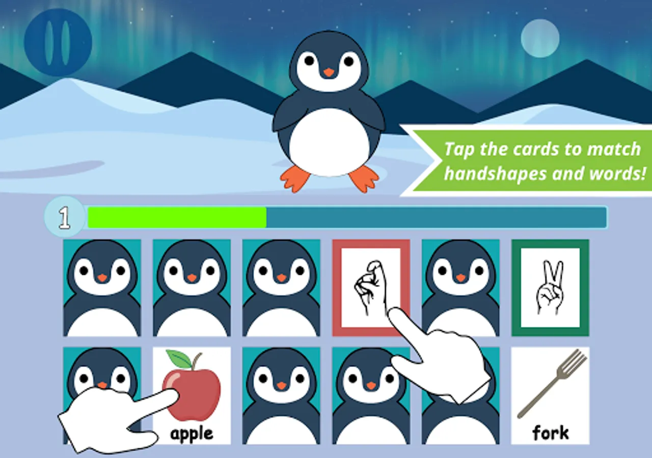 Hungry Penguins and Memory Match feature 2 gameplay options: Picture mode or Text mode supporting sign and/or print vocabulary learning and practice!
