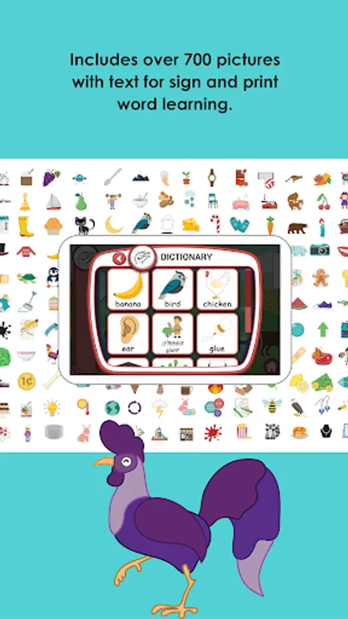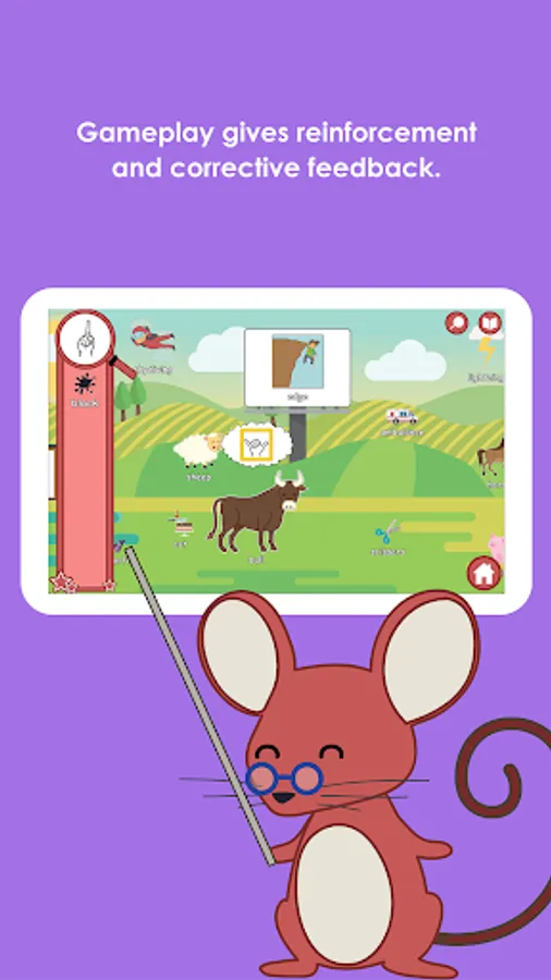 • Increases engagement and motivation for mastering sign and print vocabulary by learning and practicing interactively.