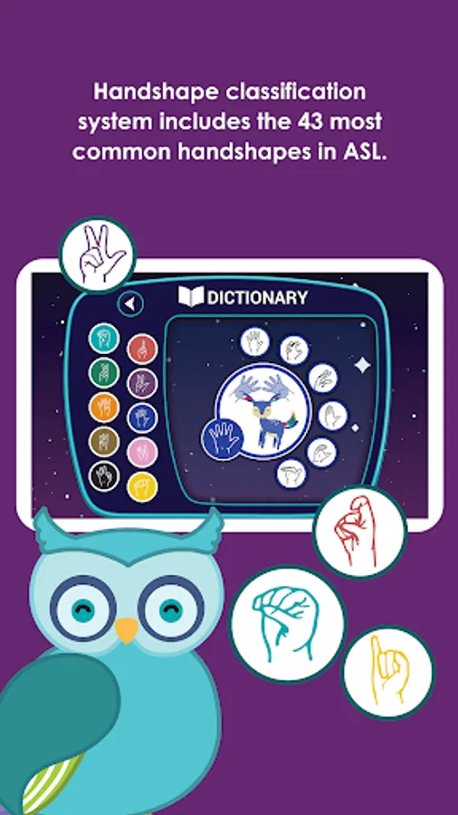 • Handshape classification system includes the 43 most common handshapes in ASL.