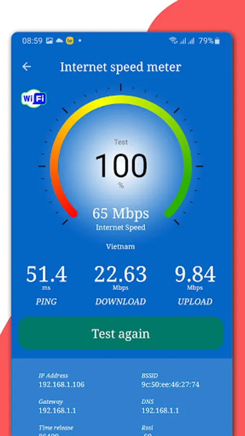 - Check internet connection status for your phone to help you verify your internet speed at the time of performing the test and display detailed internet speed information.