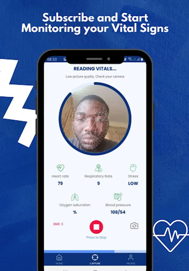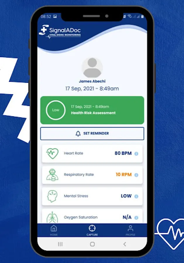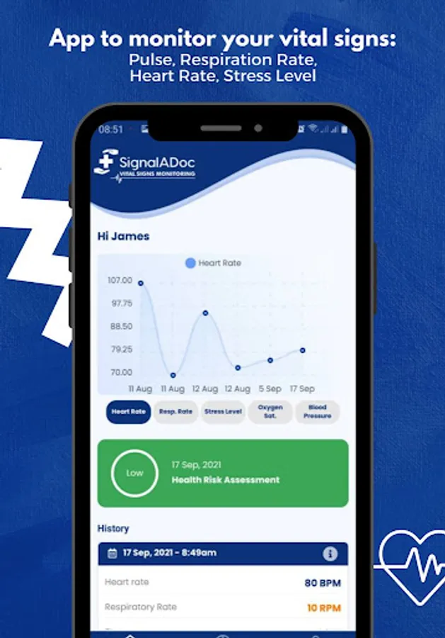 Monitoring your vital signs will help you safeguard your health and live a healthier lifestyle. The SignalADoc VSM app is a wellness tool that allows you track and monitor your Vital signs from wherever you are. The innovative solution uses contactless non-invasive facial video scanning for estimating and monitoring vital signs such as pulse, heart rate variability, respiratory rate and stress levels. With the App, you can read and analyze clearly displayed results supported by color-coded feedback and blood pressure zones.