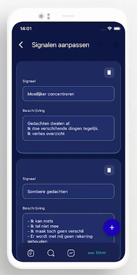 Once in use, the app offers a personal overview of which moments turned out to be (very) difficult. This provides insight into which repetition patterns there may be and how you can get to work to prevent them.