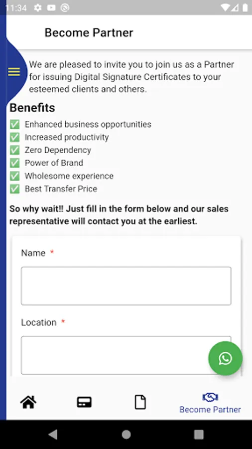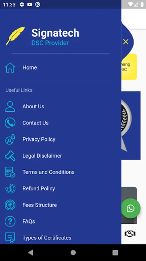 It is herewith notified to the user that we are only a Service Provider offering consultancy services to help people with providing Online Digital Signature Certificate. The users require to present their personal data in the agreement of the said clause. Their usage of this app will be overseen by the terms & conditions, privacy policy, grievance policy & refund policy as displayed on the app. The usage of this app by any user is in the agreement with the above policies.