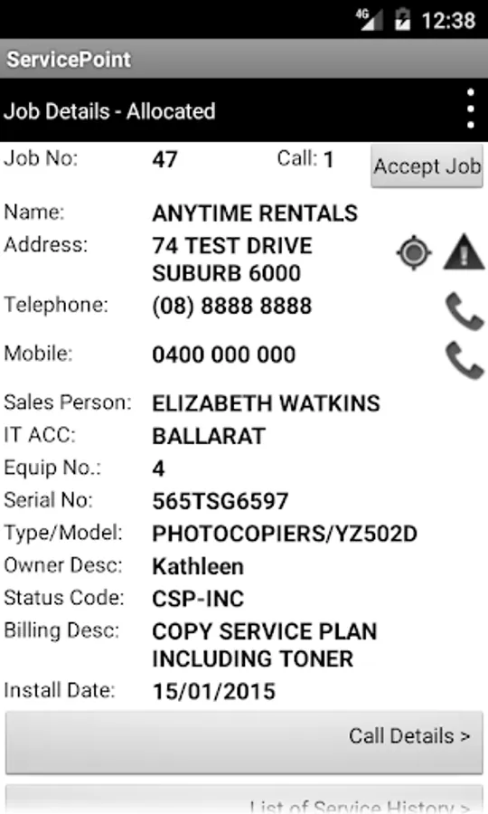 ICE Integration module ServicePoint - Service Call Manager for mobile devices.