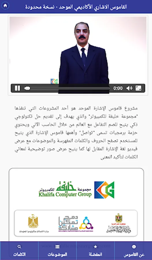 Unified Arabic Sign Language Dictionary is one of Tawasol Deaf solution' applications for Empowerment and Inclusion of PWHD ( Deaf ). The sign dictionary is approved by the Ministry of Education and Ministry of Communication and Information Technology in Egypt.