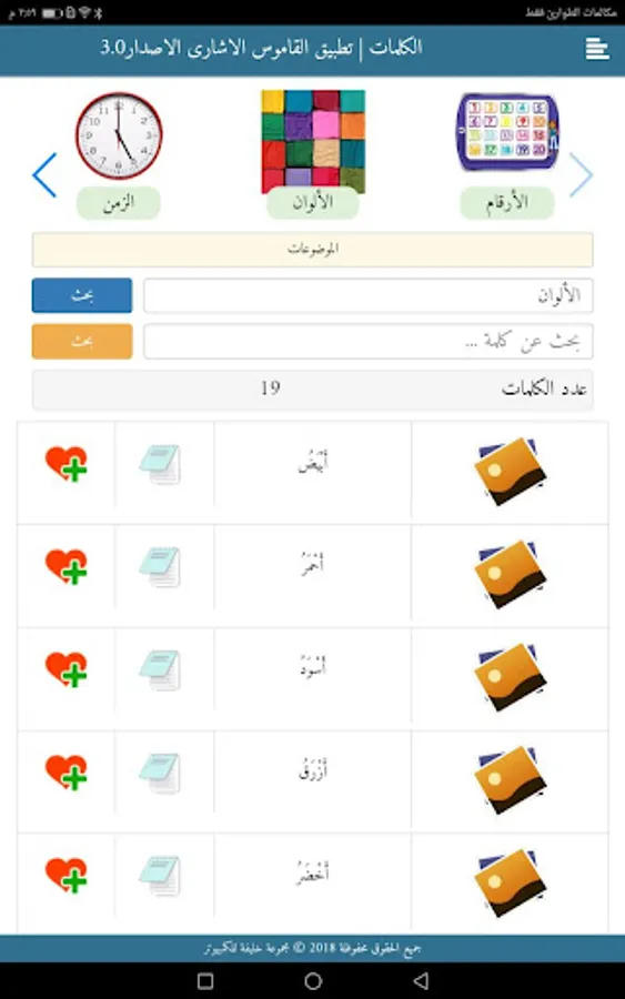 It is the first indicative dictionary in the Arab world that works on the Android system and contains ten thousand words with an illustration in an easy and simplified way to help deaf and non-deaf people understand the intended meaning of the word specifically. The Ministry of Education, the Ministry of Communications, and other government agencies.