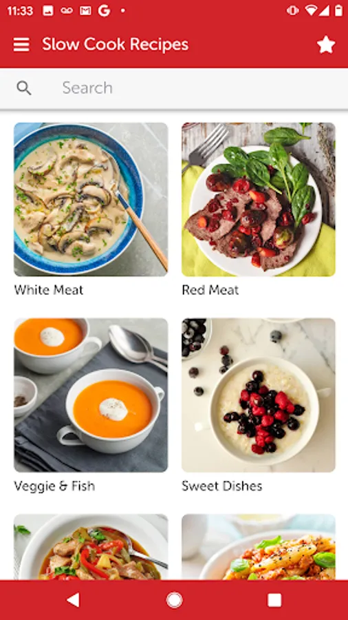 * Recipes divided into clear white meat, red meat, veggie & fish and sweet dishes sections