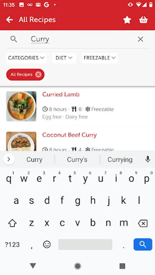 * Search for your favourite family recipes by recipe name and ingredient