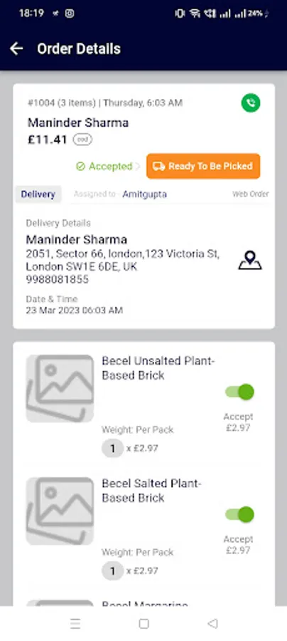 Manage Orders: Admin can check the list of all orders available, pending orders, accepted and rejected orders along with the total revenue from the orders.