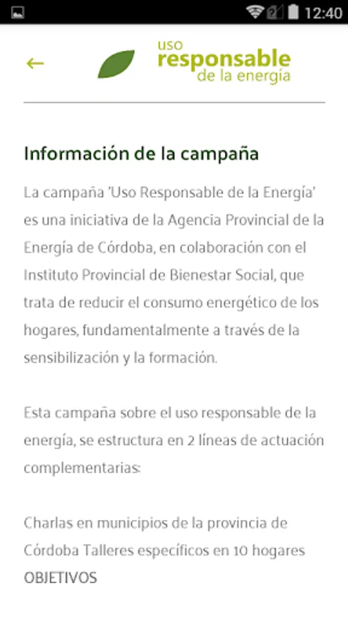 The campaign 'Responsible Use of Energy' is an initiative of the Provincial Energy Agency of Córdoba, in collaboration with the Provincial Institute of Social Welfare, which seeks to reduce household energy consumption, mainly through awareness and the formation.
