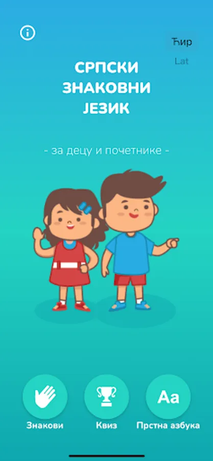 Serbian Sign Language (SSL) experts from our application are children up to 12 years old who teach you the most common and common signs from SSL.