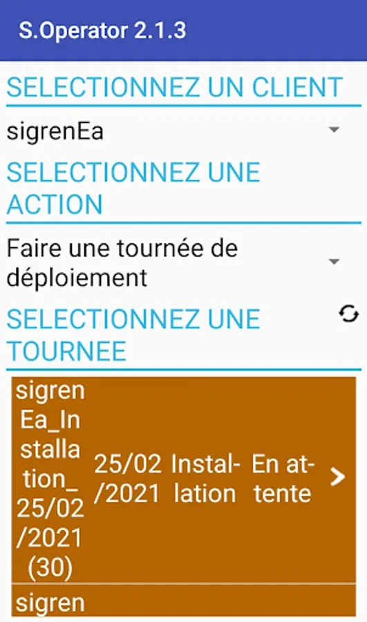 Cette application permet de réaliser les tournées de déploiement créées sur S.Monitor.