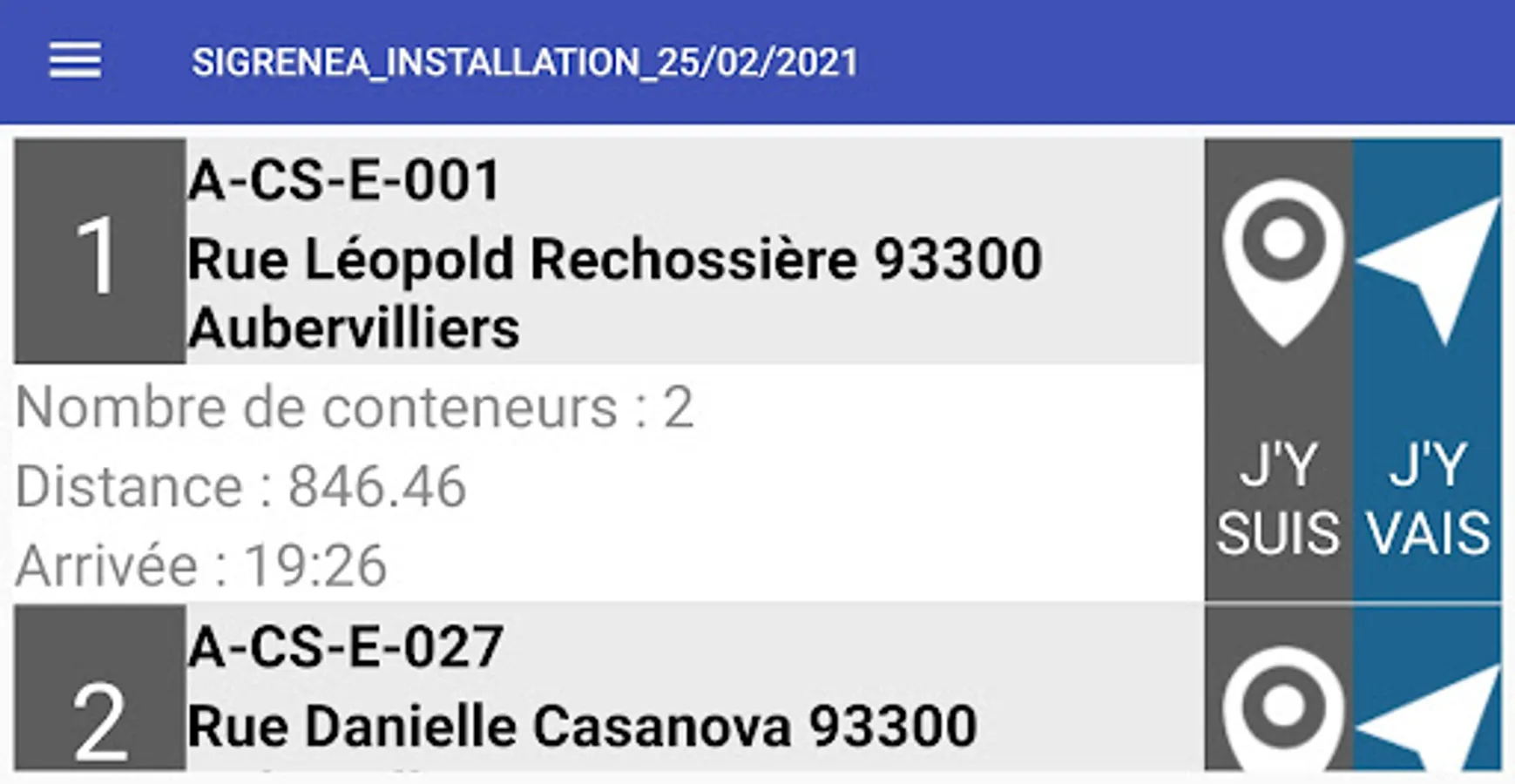 Elle permet principalement à l’utilisateur d’être guidé via la navigation GPS jusqu’aux différents conteneurs à traiter et d’y effectuer les actions demandées par la tournée :