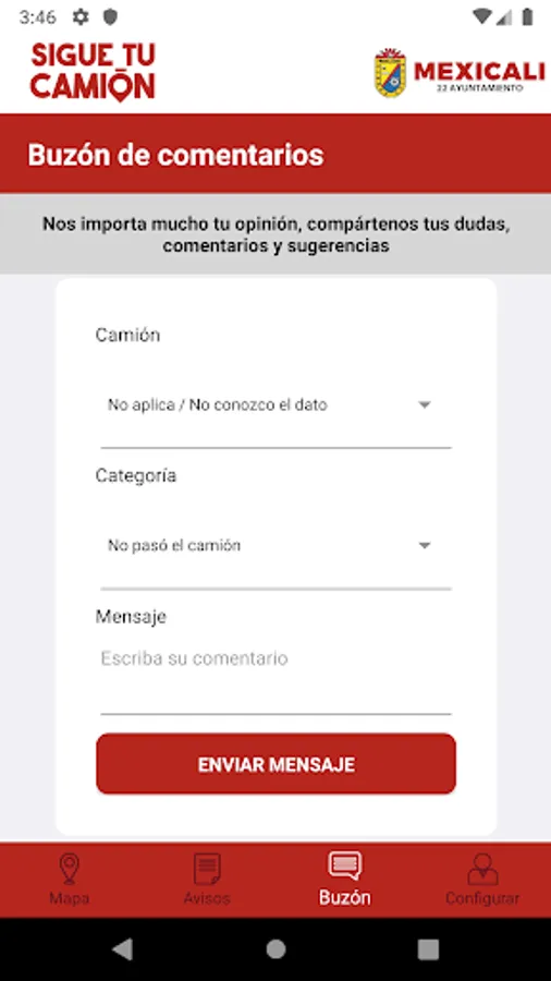 Follow the location of your collection truck in real time, receive notifications regarding the service or when the truck is near your home, send comments to the administrators regarding the service.
