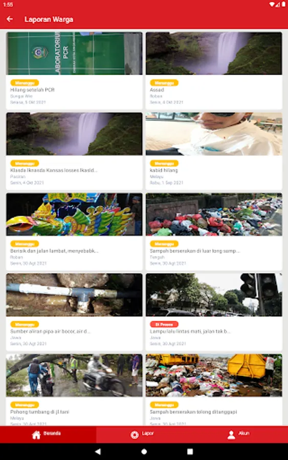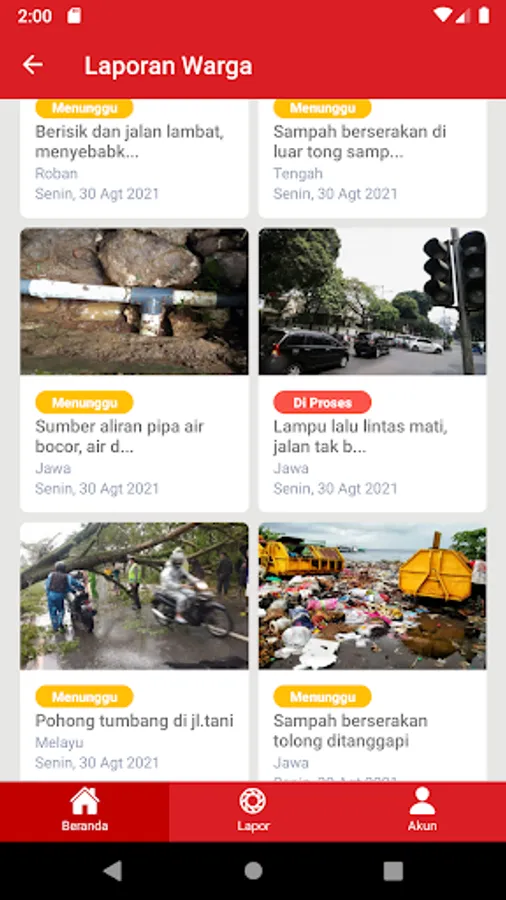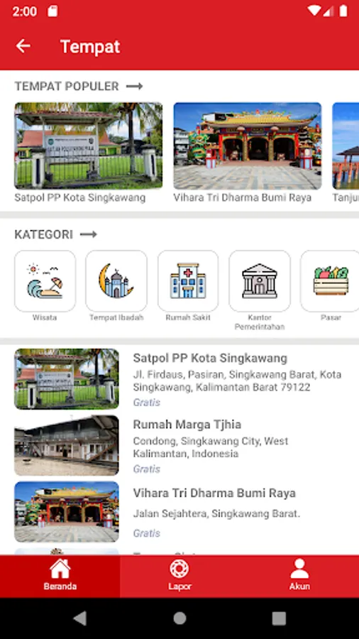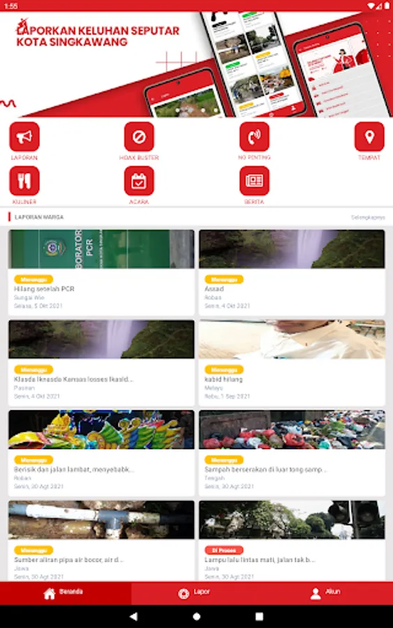 Report all problems and complaints about the city of Singkawang and monitor the progress of the solution via your cellphone.