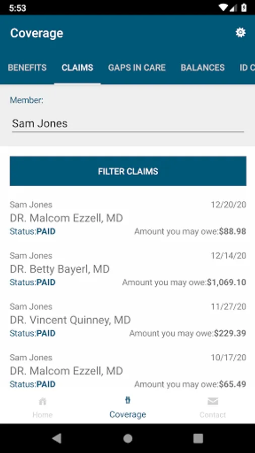See your ten most recent claims. Get a detailed view of each one. Or look up specific medical, dental and pharmacy claims by member name.