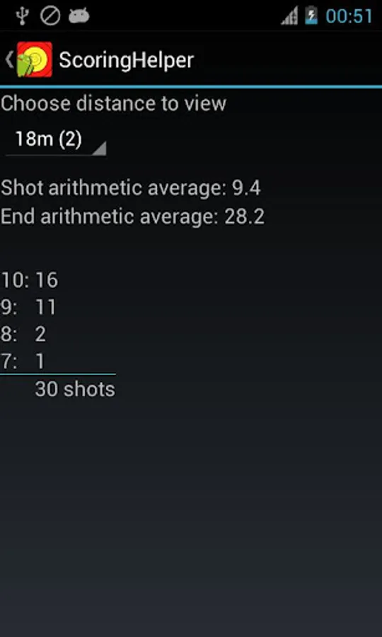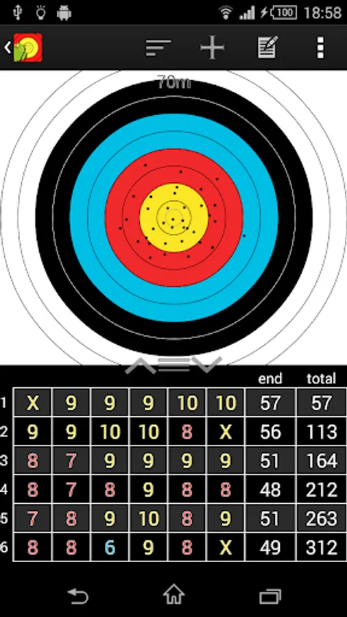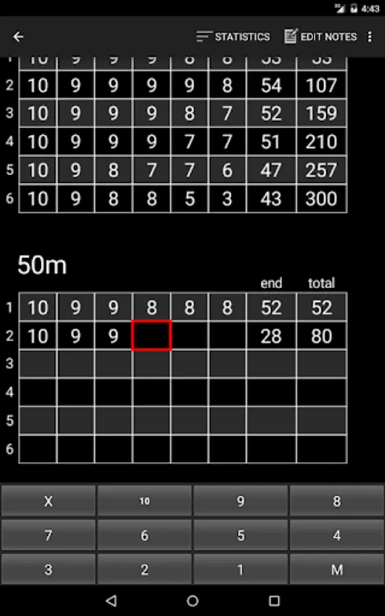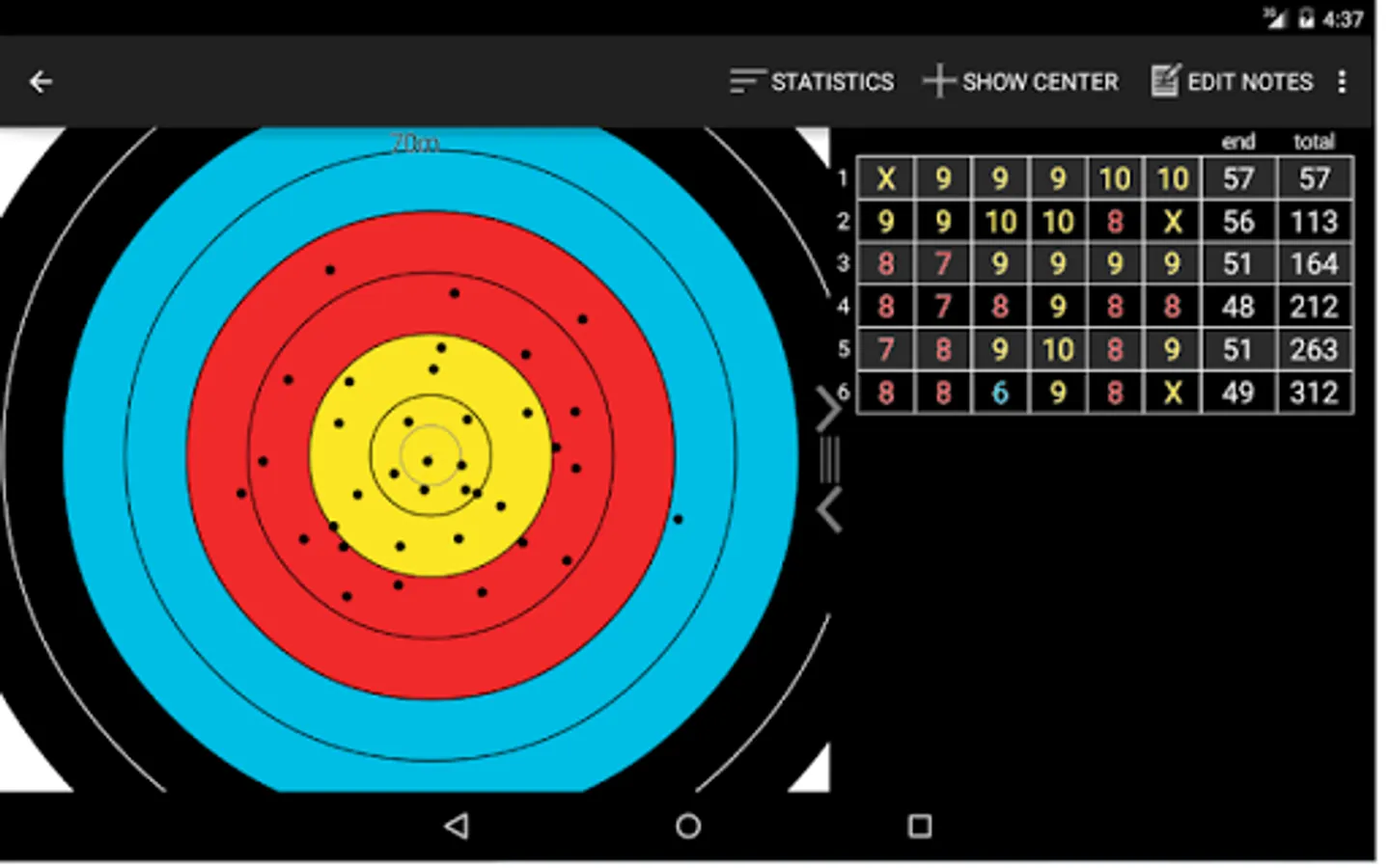 * Round statistics – show average shot, average end, count of x’s, tens etc