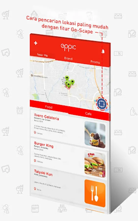 Eppic membuat navigasi menjadi lebih mudah dan cepat. Temukan bisnis lokal dan tempat-tempat terbaik di kota dan lingkungan sekitarmu, lengkap dengan informasi yang kamu butuhkan untuk mencapai kesana. Dapatkan juga beragam penawaran promosi sesuai keinginan dan referensi kamu.