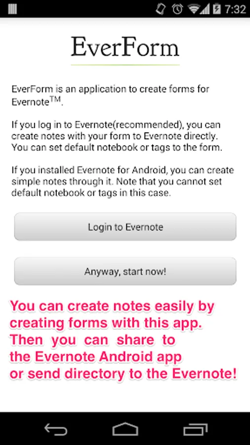 You can register your notes to Evernote by either installing the Evernote app or logging in to Evernote.